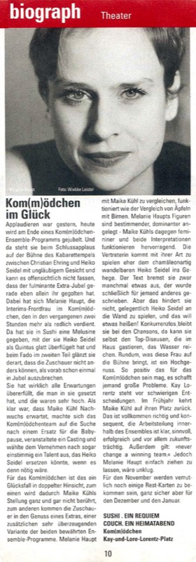 In der Zeit von 2009-2014 habe ich die Frontfrau vom Ensemble für 200 Vorstellungen von COUCH und SUSHI vertreten.